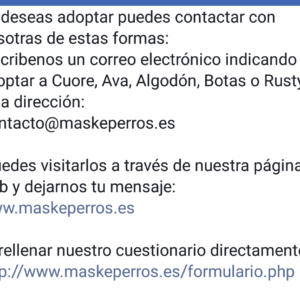 📍 Provincia: GRANADA🚻 Sexo: HEMBRA📏 Tamaño: MEDIANO