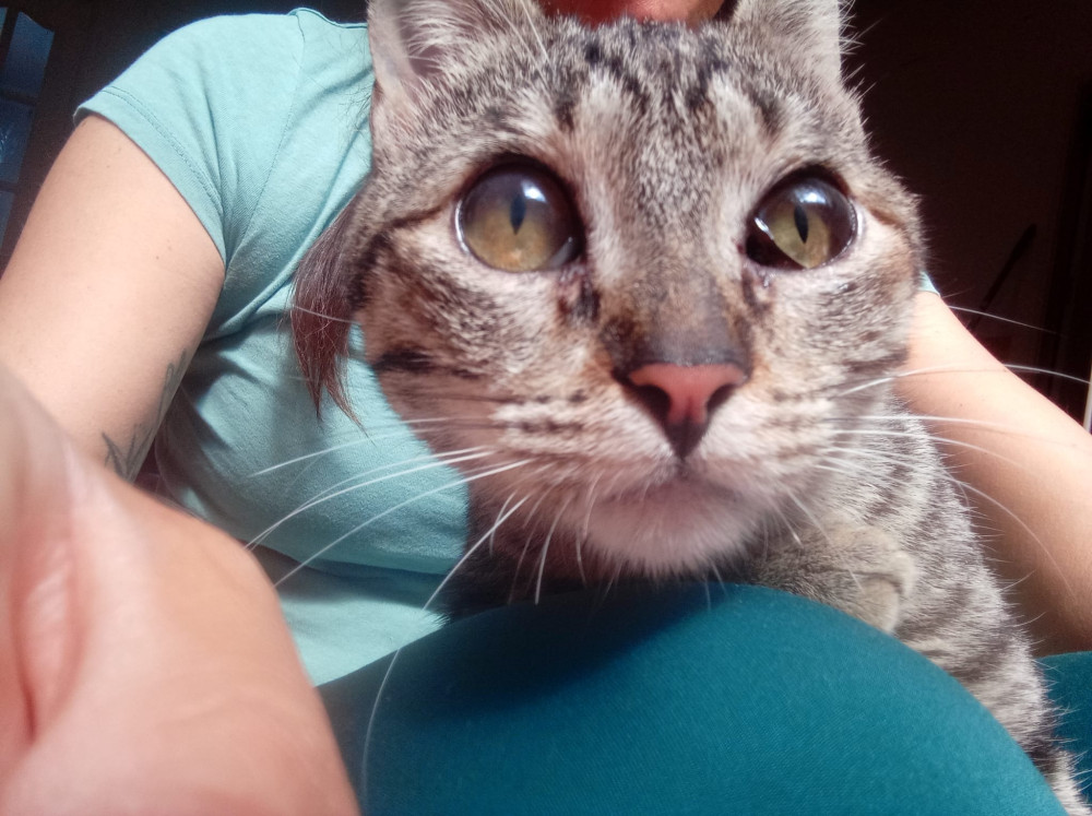 Hoy, esa bebita frágil se ha convertido en una gatita activa, juguetona y llena de vida. Nada le impide disfrutar, curiosear y repartir alegría a su alrededor.