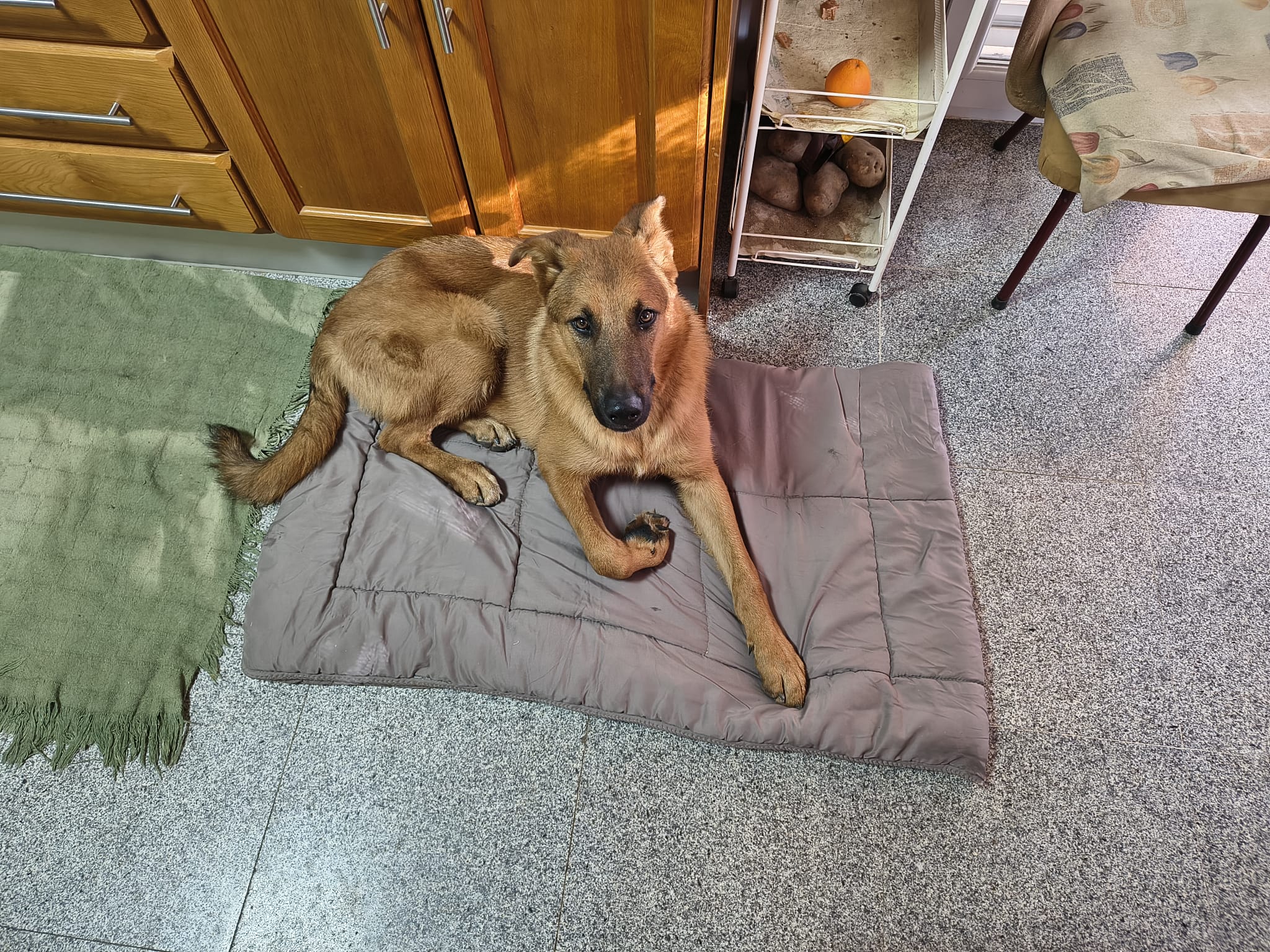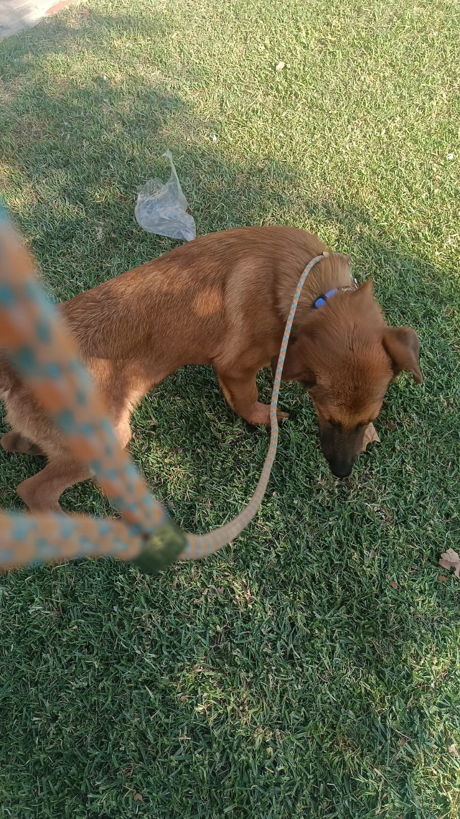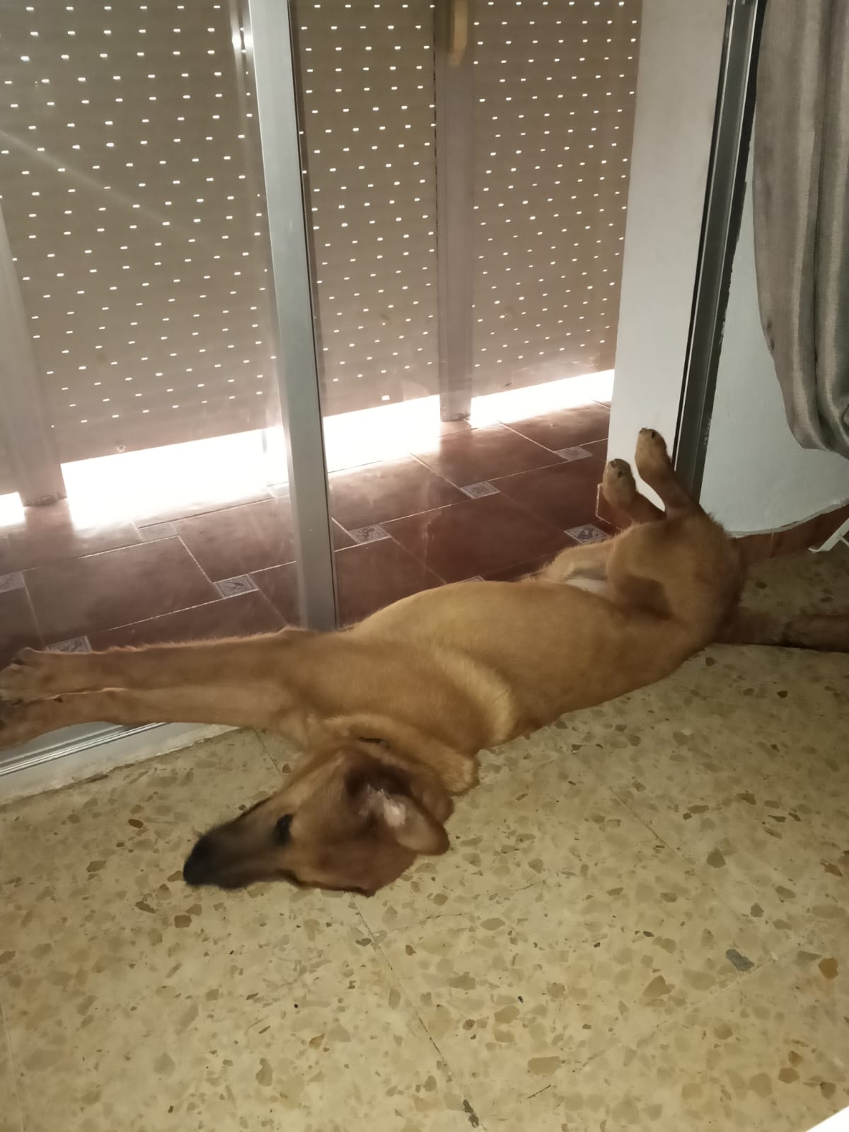 Jhonnie es un perro de unos 8 o 9 meses pesa unos 27 kg y es color marrón claro. Lo encontramos una noche de lluvia junto a una carretera en La Rinconada sólo, mojado, famélico y lleno de pulgas y garrapatas. No dudamos en llevárnoslo a casa y desde el primer minuto teníamos claro que se quedaría con nosotros. Pero estamos todo el día trabajando fuera de casa y al ser una raza tan activa vemos que no le podemos dar la atención y el cariño que necesita. Tiene chip y todas las vacunas al día.