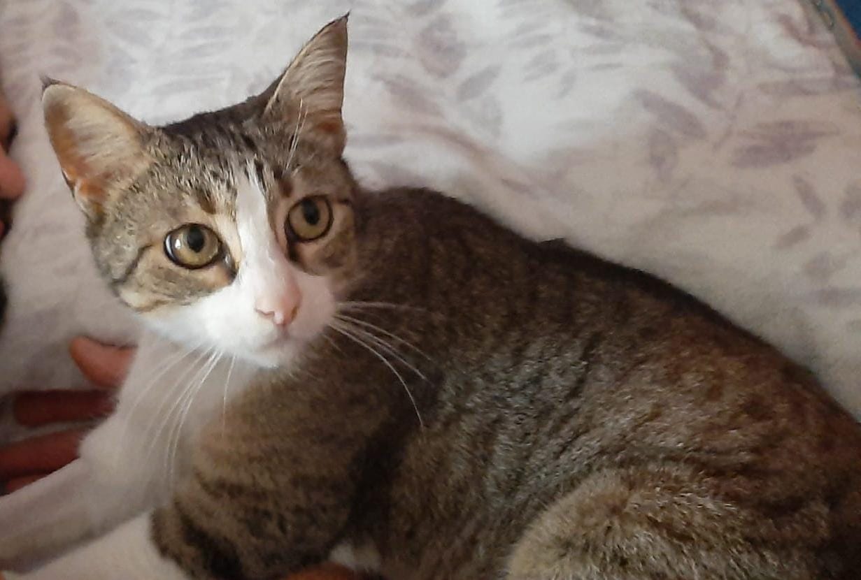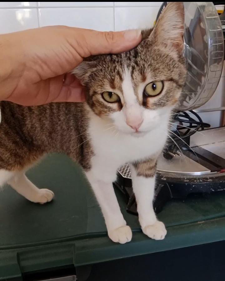 Una gatita así corre mucho peligro de ser atropellada o acabar en malas manos así que nuestro compañero Dani en cuanto la vio,no dudo en cogerla.