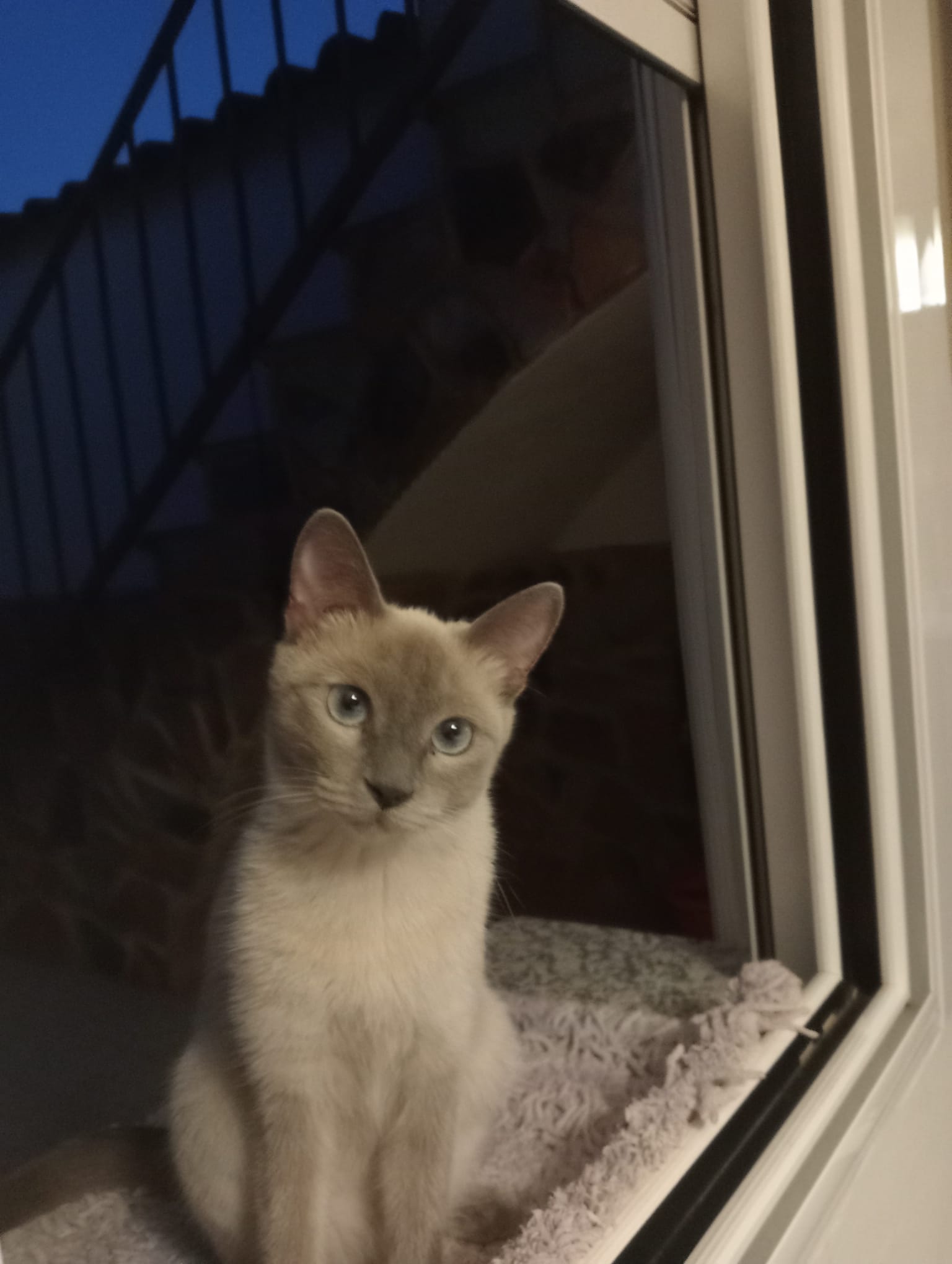 Se da en adopción gatita de 1 año sana, muy buena y cariñosa. También juguetona si la provocas. Muy bien educada y cuidadosa; sólo se sube a las sillas que tiene permitido; nada de mesas ni encimera ni camas. Respeta los muebles y se afila las uñas únicamente en una alfombra vieja que la tenemos puesta para eso. La queremos mucho, pero me ha dado alergia y somos incompatibles. No dudes en adoptarla, no te decepcionará. Sólo personas responsables