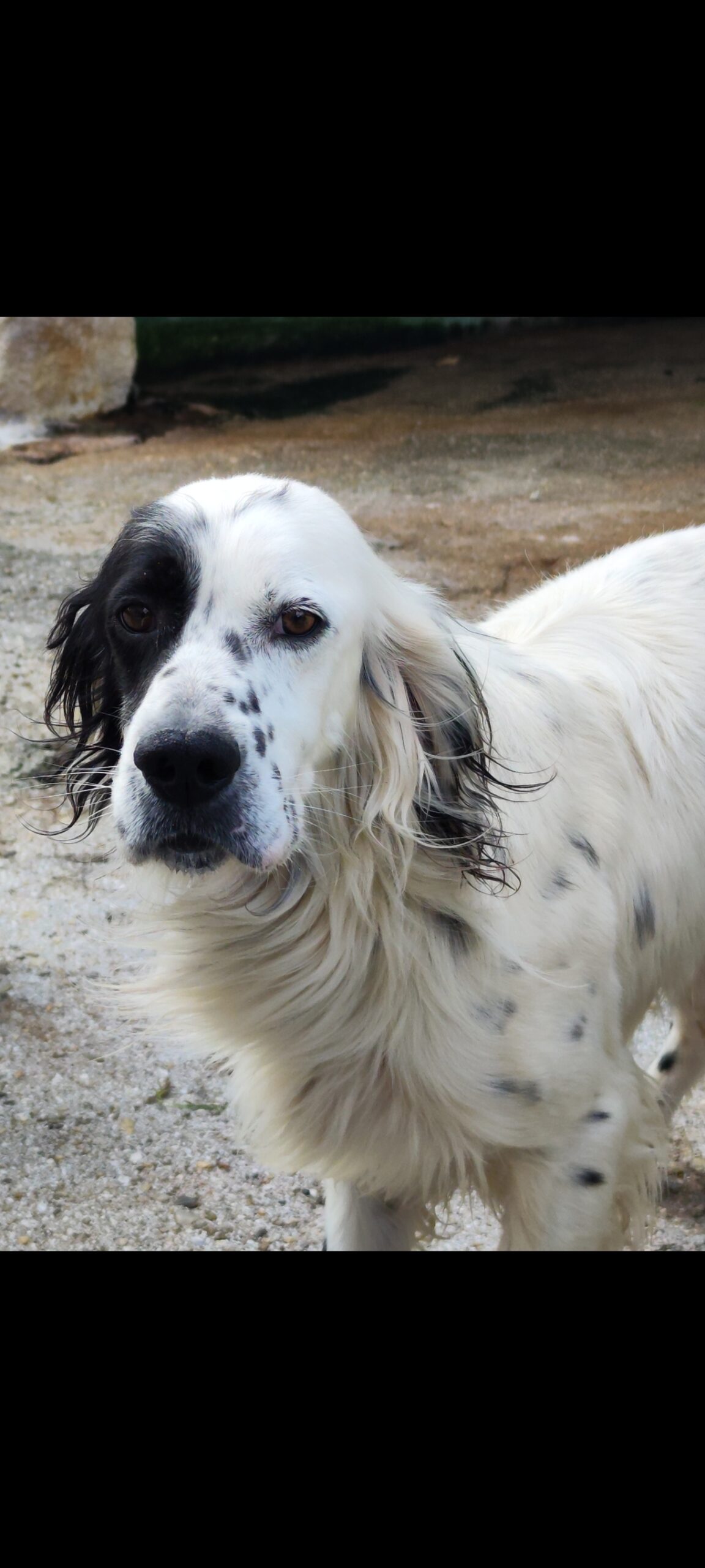 Precioso setter inglés, manso y cariñoso. Amigable con otros perros y con las personas, aunque desconfiado con desconocidos.