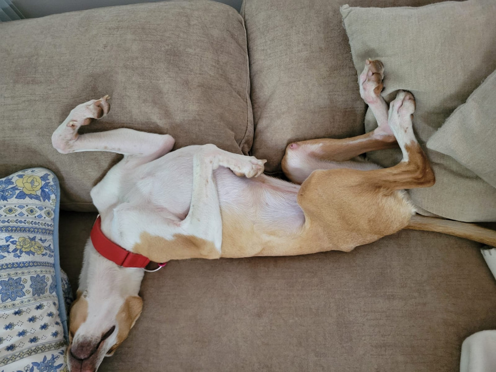 Cuando encontramos a Senda, esta preciosa podenca iba coja, desnutrida y con muchos miedos. Había sufrido demasiado.