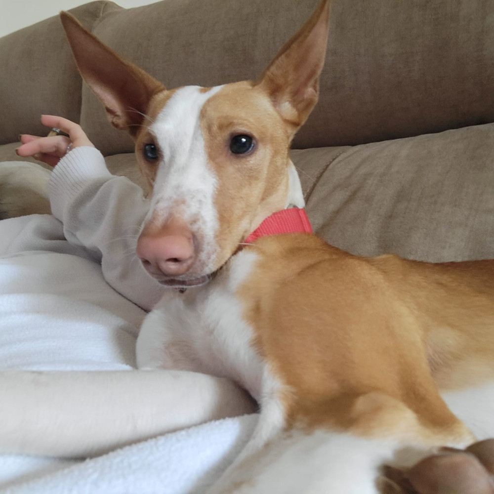 Es una perrita muy jovencita, llena de energía y con muchas ganas de jugar. Busca una familia que disfrute de largos paseos, juegos y estímulos que la hagan sentirse plena y feliz.