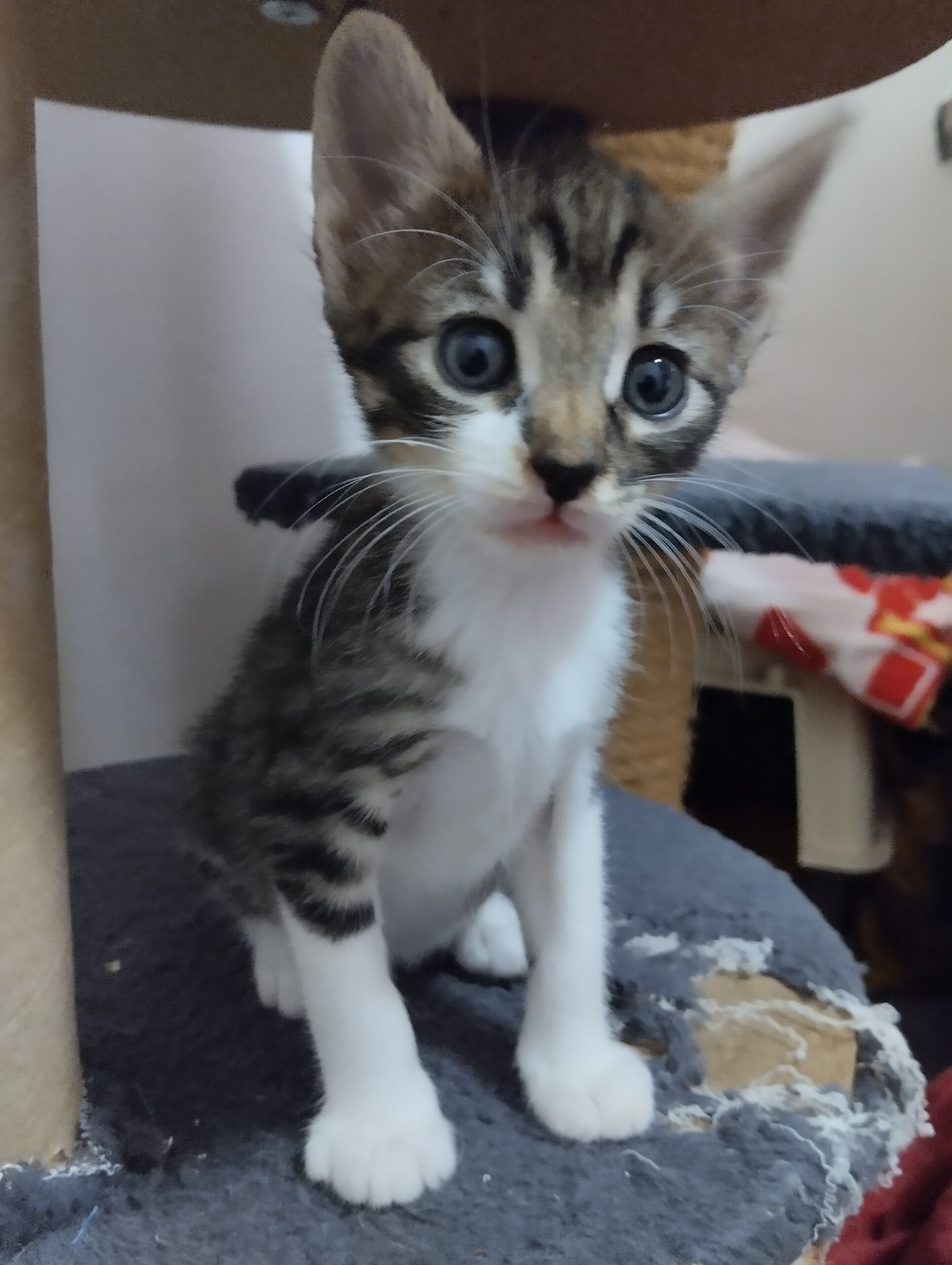 Sora es una gatita de mes y medio rescatada junto a sus hermanos porque su madre fue atropellada.