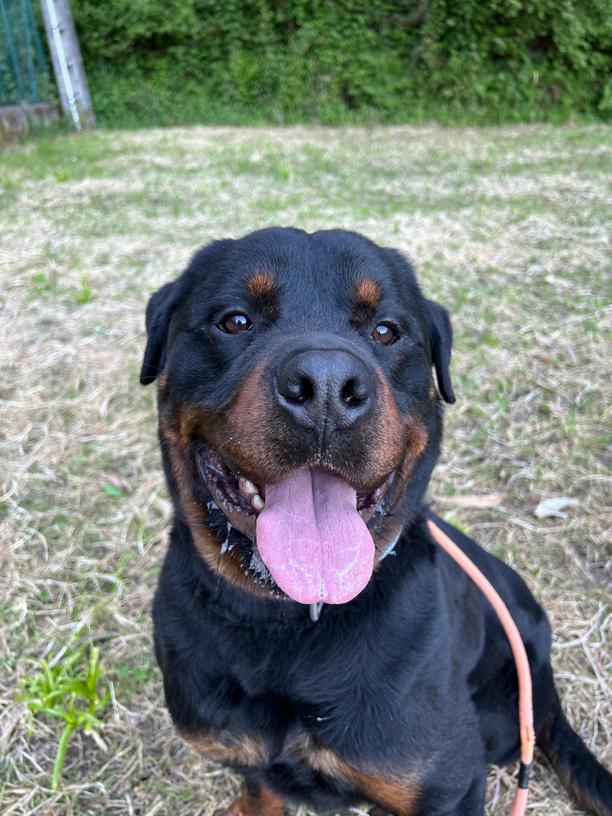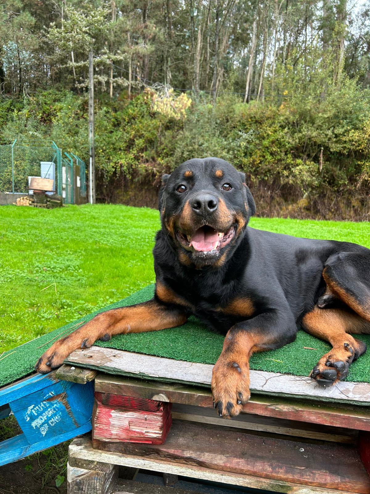 Soy Zeus, un Rottweiler de 4 añitos. Soy un perrete muy cariñoso, obediente, enérgico y con ganas de jugar. En el refugio todos los voluntarios me adoran por lo vacilón y gracioso que soy.